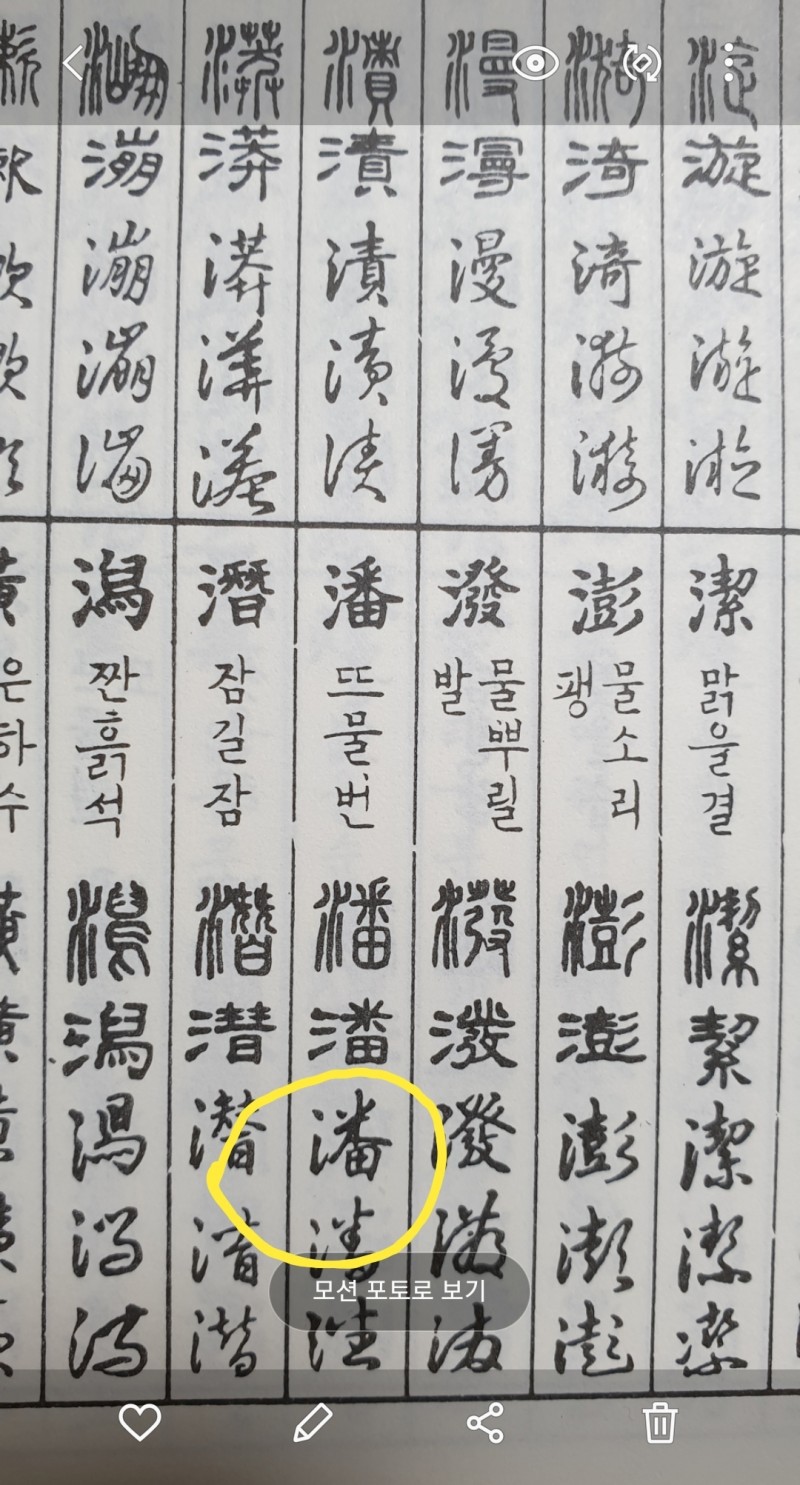 답변 | 姓潘字 표기 관련입니다. 페이지 정보 香泉쪽지보내기 자기소개 아이디로 검색 전체게시물쪽지보내기 자기소개 아이디로 검색 전체게시물 작성일21-01-04 12:34 조회1,901회 댓글0건 이전글 다음글 검색 목록 본문 ※ 댓글로 글쓰기가 안되어 새 글쓰기로 전환하여 글을 올립니다.인쇄체 姓潘字의 표기는첨부사진 潘의 위에서 아래 순으로1. 전서체2. 예서체3. 해서체에 해당되어서(예)체로는 족보와 같이 표기되었습니다.참고로4. 행서체5. 초서체 입니다.※ 출처 : 六書通字典 댓글목록 등록된 댓글이 없습니다. 이전글 다음글 검색 목록